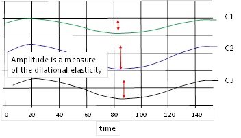 From such experiments we can determine the dilation elasticity and viscosity. The phase lag between g(t) and the area change is a measure of the dilational viscosity.