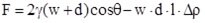 Effect of contact angle The measured force depends directly on the contact angle formed by the liquid meniscus and the vertical plate. The force balance reads