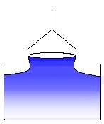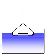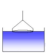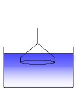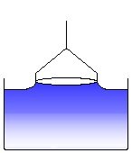 The ring is immersed into the liquid. This is the starting position of a surface tension experiment. (4)