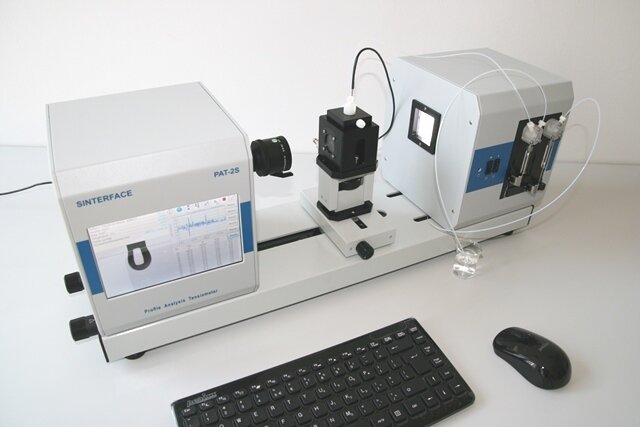 The PAT2S is the latest version of PAT instruments and continues the great tradition of PAT1M. The most striking improvements in the newly designed stand-alone tensiometer PAT2S are the higher resolution of the video camera and the more flexible mechanical construction which allows to better adapt the instrument to the requirements of the user. In addition to the higher resolution also high speed cameras with high frame rates is embedded in the corresponding software.